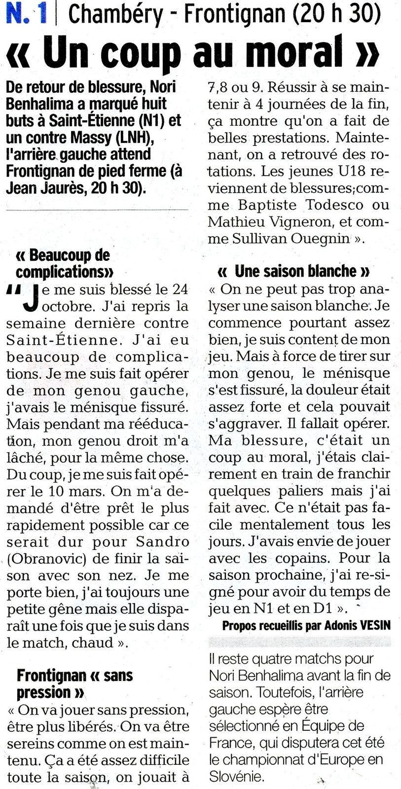 19 Mai 2018 Publié par fean73 N1 article DL avant le match CHAMBERY2 - FRONTIGNAN 19 mai 2018 Article DAUPHINE LIBERE du samedi 19 mai 2018 / Adonis VESIN ARTHUR ANQUETIL SIGNE À CHAMBÉRY LSL mardi 22 mai 2018 CHAMBERY -NANTES la der au Phare de la saison 2017 - 2018